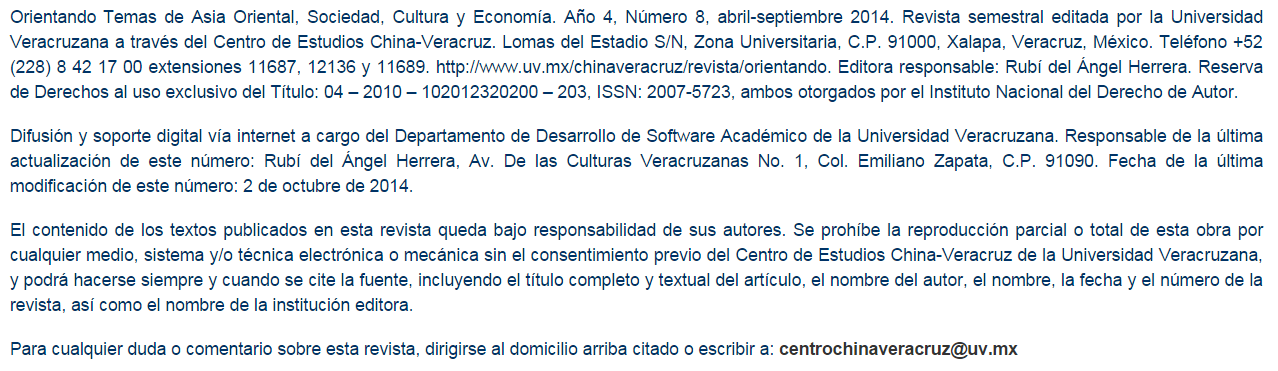 Año 4. Número 8, abril-septiembre 2014. Xalapa, Veracruz, México.