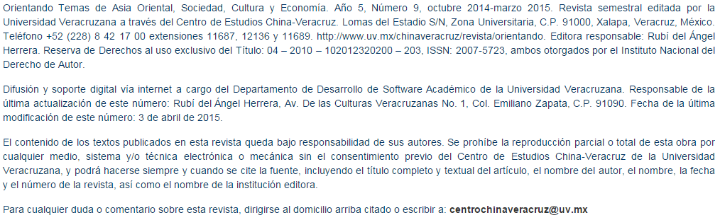 Año 5. Número 9, octubre 2014-marzo 2015. Xalapa, Veracruz, México.