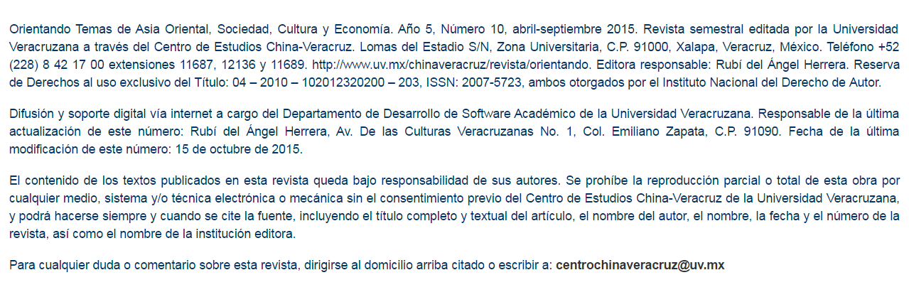 Año 5. Número 10, abril-septiembre 2015. Xalapa, Veracruz, México.
