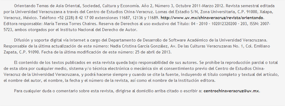 Año 2. Número 3, Octubre 2011-Marzo 2012. Xalapa, Veracruz, México.